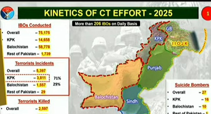 Lieutenant General Ahmed Sharif Chaudhry stated that the purpose of the press briefing was to present a holistic account of measures taken against terrorism during the last year, highlighting the scale, consistency, and effectiveness of intelligence-led operations carried out across the country.